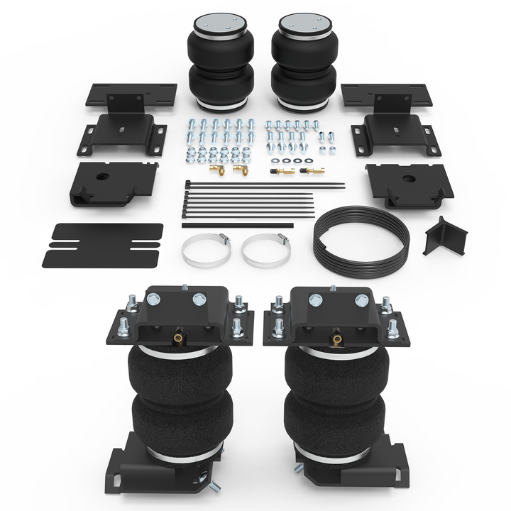 • Kit de suspension pneumatique - Offrant une capacité de mise à niveau de charge impressionnante allant jusqu'à 5 000 livres, augmente le taux de ressort plus efficacement que le traditionnel ou l'original, réduit la quantité de chocs et de vibrations, améliore la stabilité du véhicule pour offrir une conduite plus sûre et plus confortable