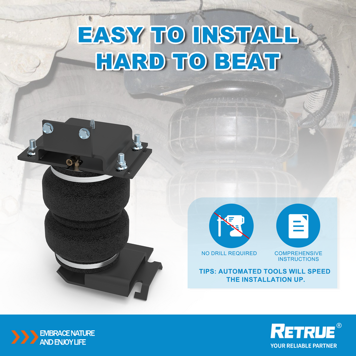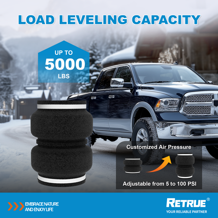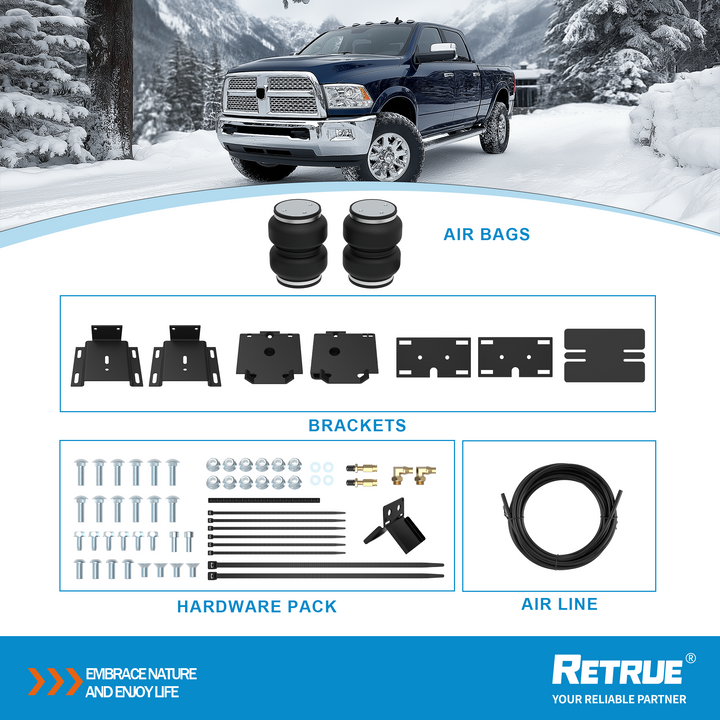 Air Helper Spring Kit for RAM 1500Pickup 2009-2010, RAM 1500 2011-2018, RAM 1500 Classic 2019-2024 help boost your pickup truck's stability, ride quality,brake effectiveness, and safe load-carrying capacity. Air Helper Spring Kit for RAM 1500Pickup 2009-2010, RAM 1500 2011-2018, RAM 1500 Classic 2019-2024 help boost your pickup truck's stability, ride quality,brake effectiveness, and safe load-carrying capacity.