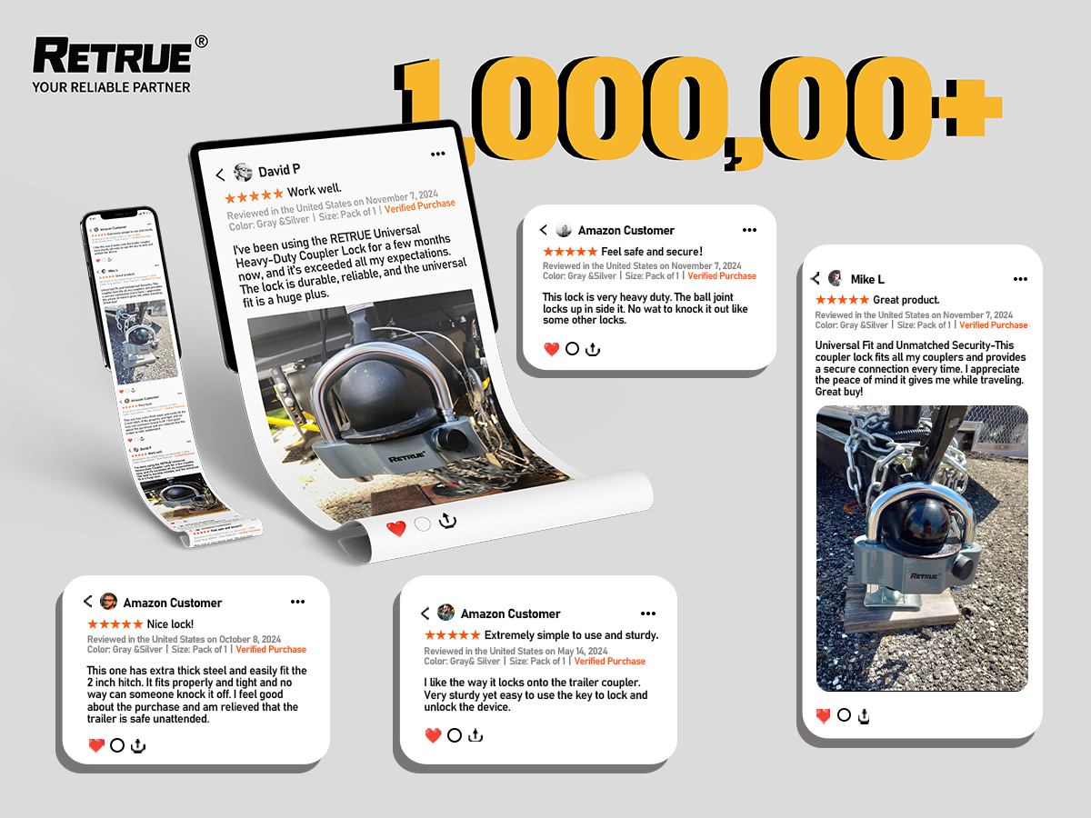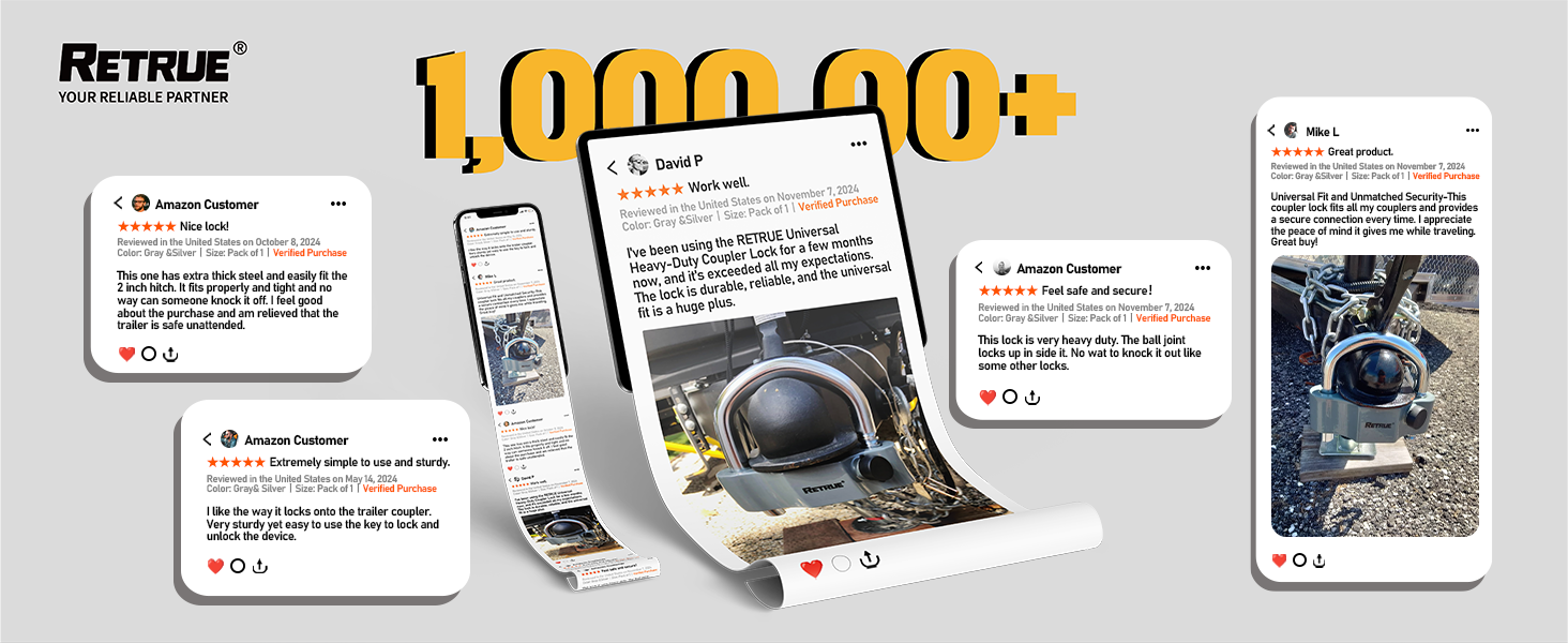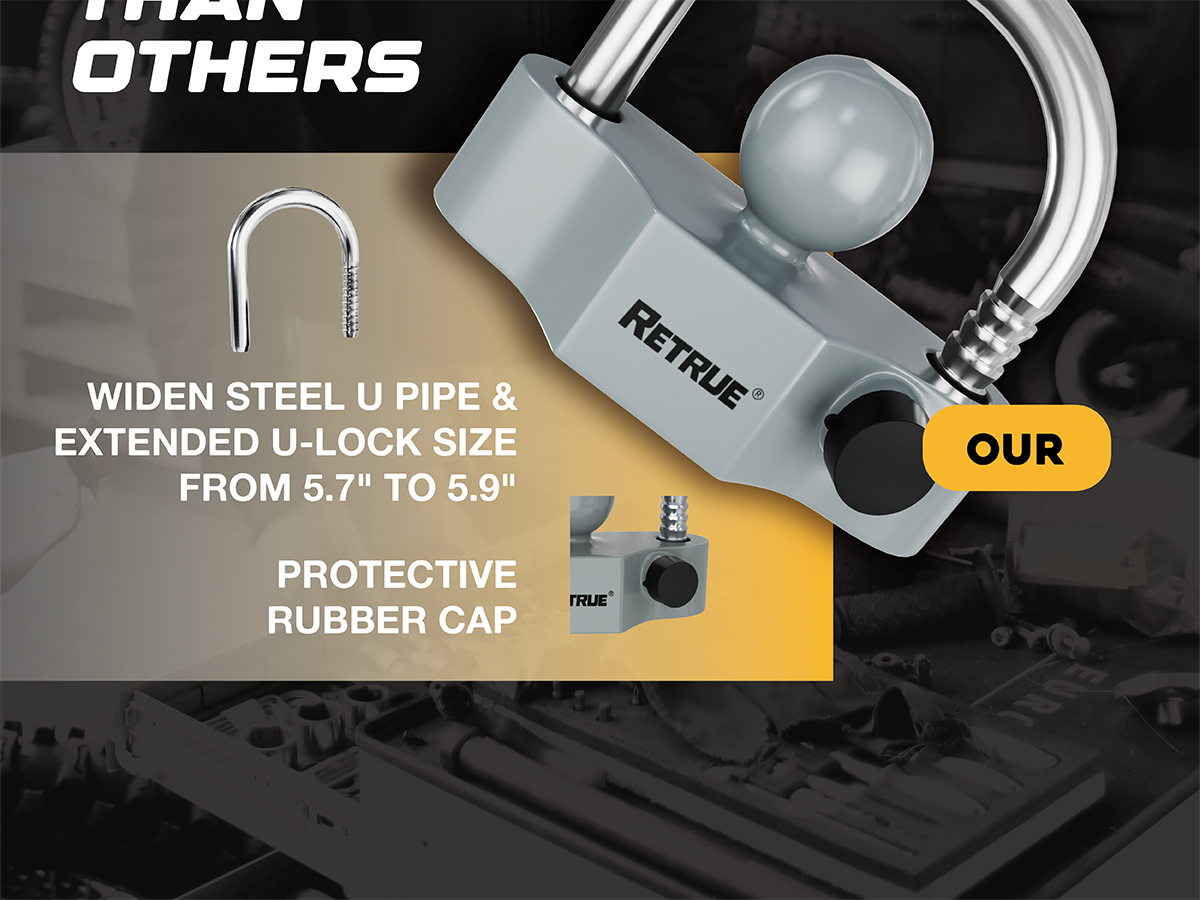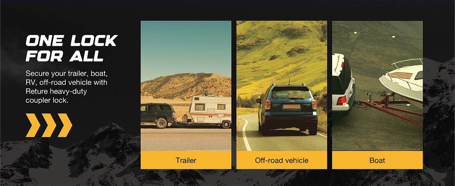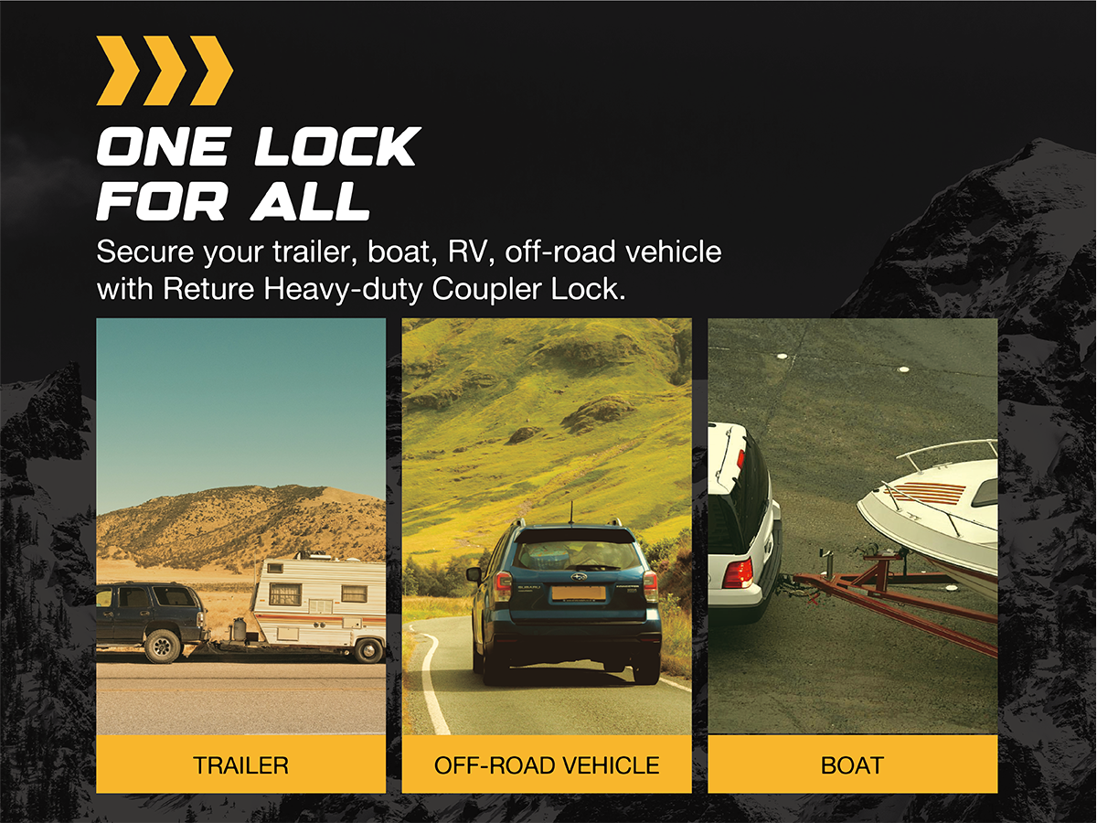 Universal Fit : RETURE trailer coupler lock offers unmatched versatility with its 11 locking positions, compatible with 1-7/8", 2", and 2-5/16" couplers.