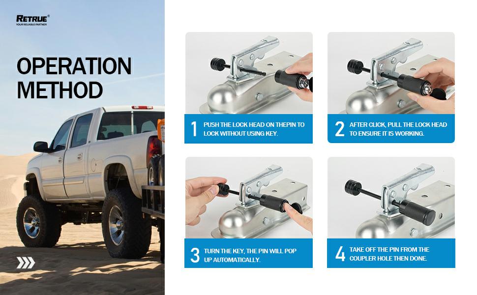 - This trailer pin lock is made of high-strength zinc alloy and protected from the elements with its black painted finish, while the coupler pin is shielded against corrosion with a durable zinc plating, enhance the the life of coupler lock and the security.