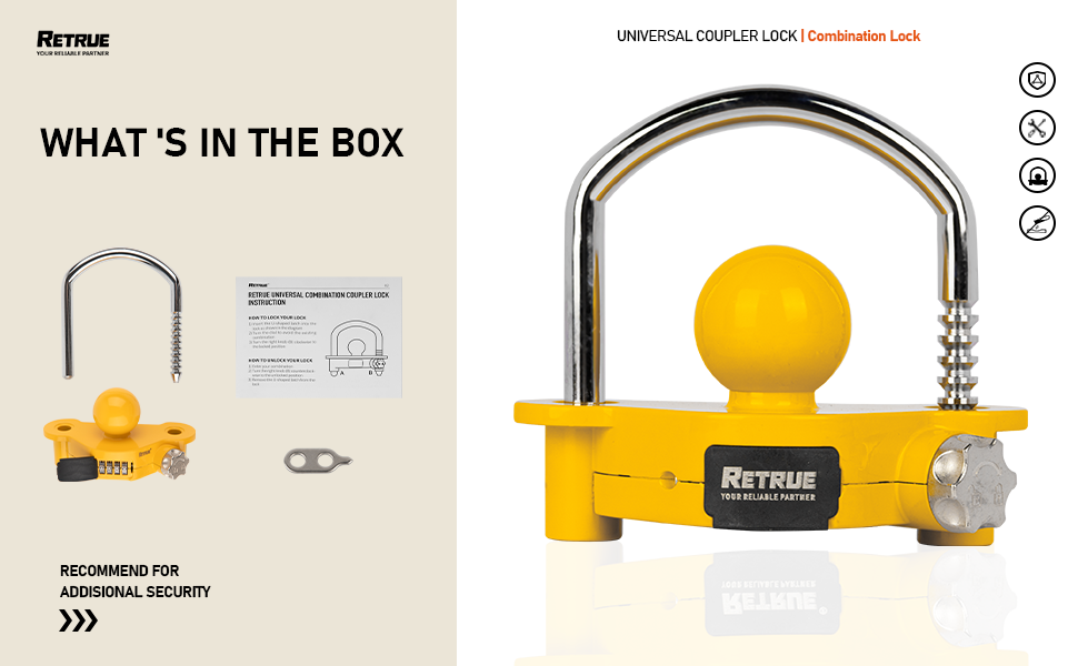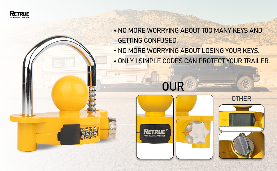 - Easy to use: This combination coupler lock with lockcombines which default combination is (0000) you set your preferred combination, no more worrying about losing or accidentally breaking your keys.