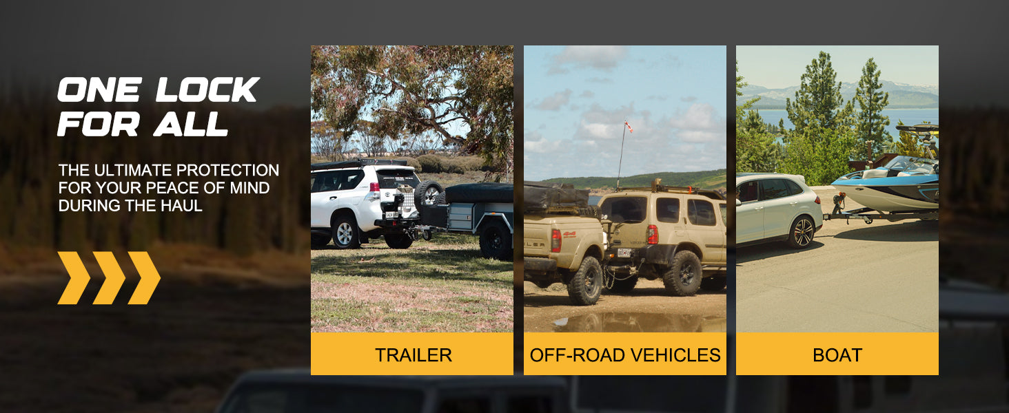 - Securtiy: This trailer hitch lock is made with aluminum body and high-strength A36 steel construction, strong cut, and shear resistance. It's rustproof and weatherproof.
