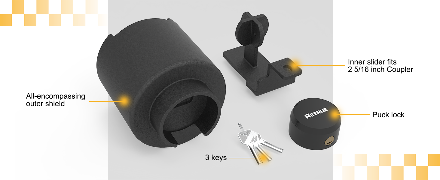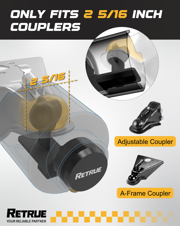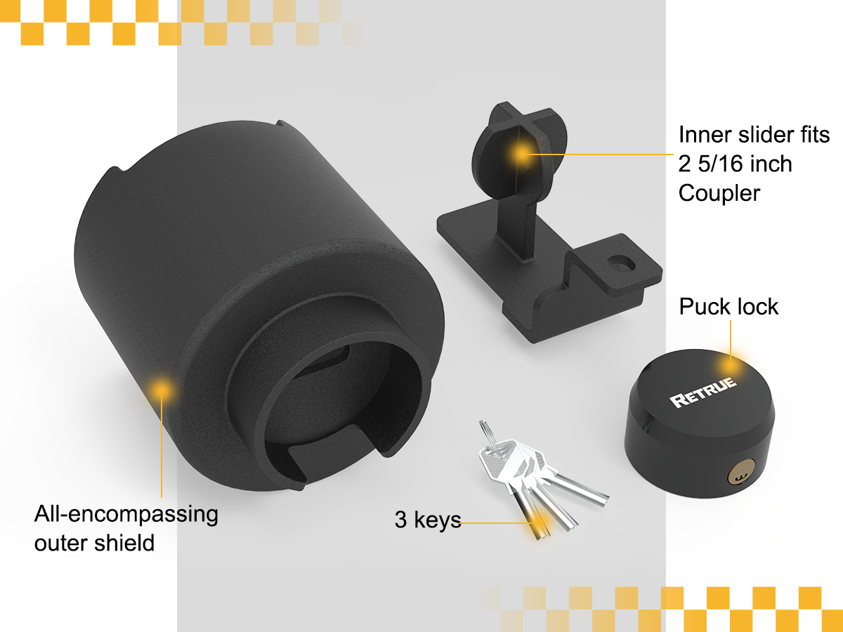 Built for long-term outdoor use, this 2-5/16" trailer hitch lock features a durable powder-coated finish that prevents rust and corrosion. Whether you’re storing your trailer at home, parking at a jobsite, or traveling across different climates, the RETRUE lock stays strong in rain, snow, heat, or coastal humidity.