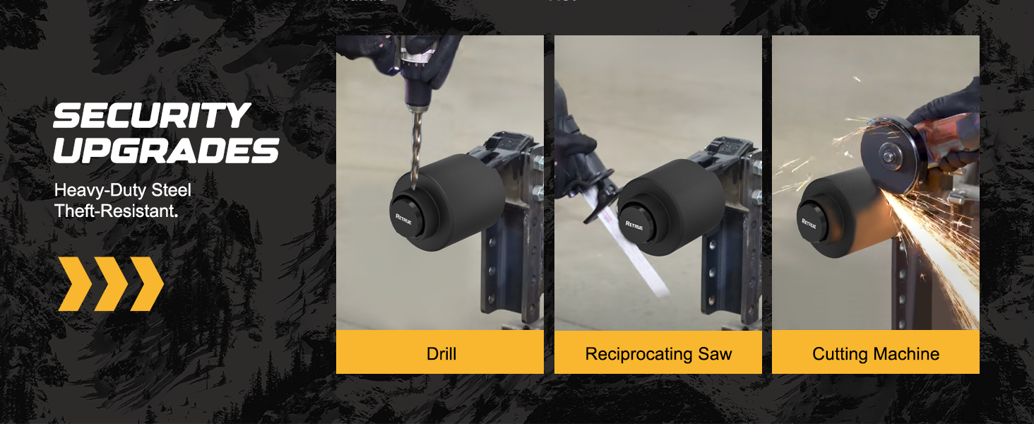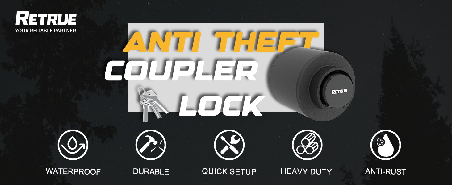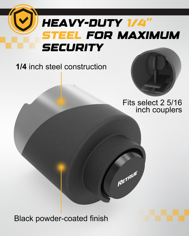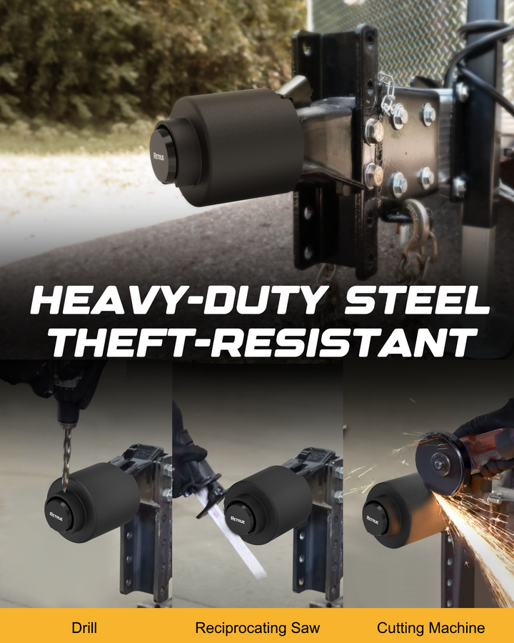 The RETRUE Heavy-Duty Trailer Lock is engineered to secure your trailer with strong, theft-resistant protection. Made from hardened steel, this trailer coupler lock withstands drilling, prying, cutting tools, and heavy impact—making it an ideal anti-theft solution for utility trailers, RV trailers, boat trailers, cargo trailers, and more.