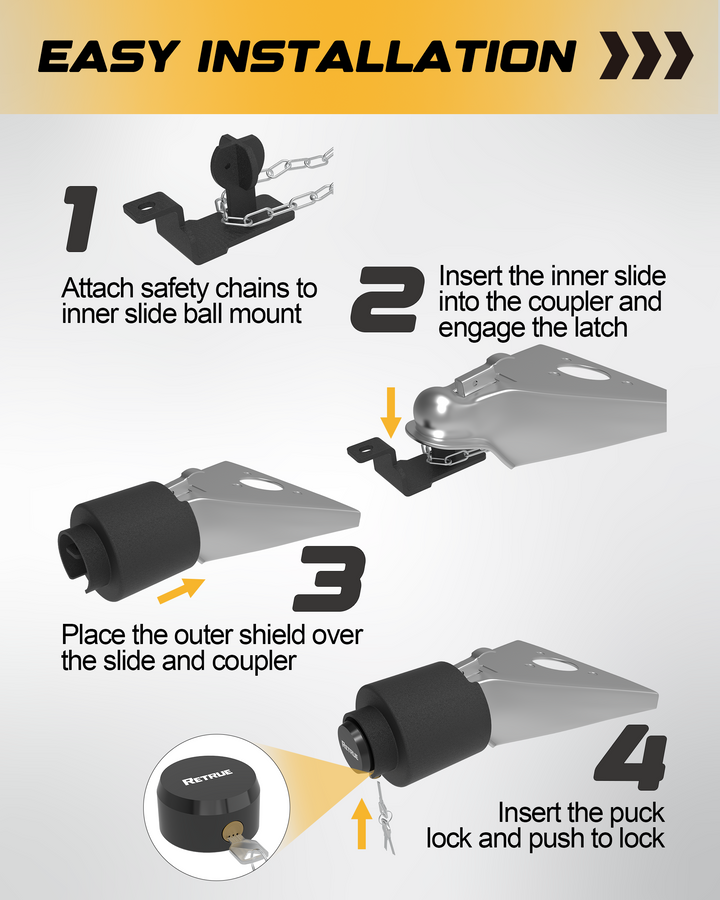 All RETRUE trailer locks include a 1-year warranty and responsive customer support. If you experience any issues with fit or performance, our team is ready to help you with fast, effective solutions.