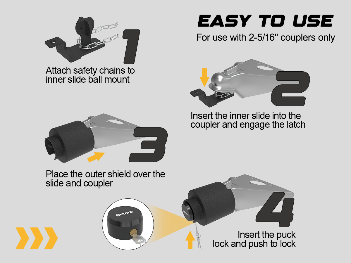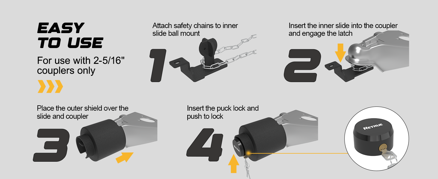 RETRUE Heavy Duty Trailer Hitch Lock for 2 5/16″ Ball Coupler & Safety Chains – Anti-Theft Security for RV, Boat, Cargo Trailers
